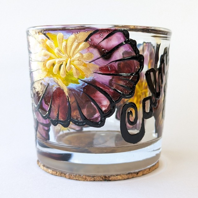 ●水中花キャンドルホルダー ピンク サイズ∶高さ6cm×直径6.5cm×厚さ7mm 素材∶ガラス、コルク(底) ●発送 ご購入後2,3日の間に発送致します ※時間指定を希望の方はご購入の際の備考欄にご記入下さい ※他商品と複数点ご購入の場合は、手続き前にメッセージからご連絡いただけますと送料をまとめてご案内いたします。 ◇◇◇◇◇◇◇◇◇◇◇◇◇◇◇◇◇◇◇◇ ーーーキャンドルホルダーの魅力ーーー この水中花キャンドルホルダーは、美しいマーブル模様の花が施され、キャンドルを灯すことで幻想的な光を演出します。 華やかなピンクは、心を癒し穏やかにします。 まるで花が水の中で揺らいでいるかのような独特の風情を感じさせます。 様々な場面で活躍することができるこのキャンドルホルダーは、心安らぐひとときを演出します。 リラックスタイムや特別なディナー、または大切な人への贈り物としてもぴったりです。 ーーー手作りの温もりーーー ヘナタトゥーで使われる絞り書きの手法を用いて 全て手作業で色付け、ペイントしております。 花びらのマーブル模様は どのくらいの大きさで どんな模様が出るか 全くの未知。 同じものは二度と作ることが出来ない完全な一点物です。 火を灯した時の美しい光の反射は、どんな空間でも特別な雰囲気を醸し出します。 また、太陽光やライトに当たると 正に水の中に揺らめく水中花のような、透明感のある美しい表情を見せてくれます。 インテリアとしても存在感を放ち、お部屋を華やかに彩ります。 ーーーお手入れについてーーー ガラス製品ですので、優しく取り扱ってください。 汚れた場合はティッシュか柔らかい布で拭き取っていただくと、長く美しい状態を保つことができます。 特別な癒しの時間をお届けします。是非この機会にお買い求めくださいませ。