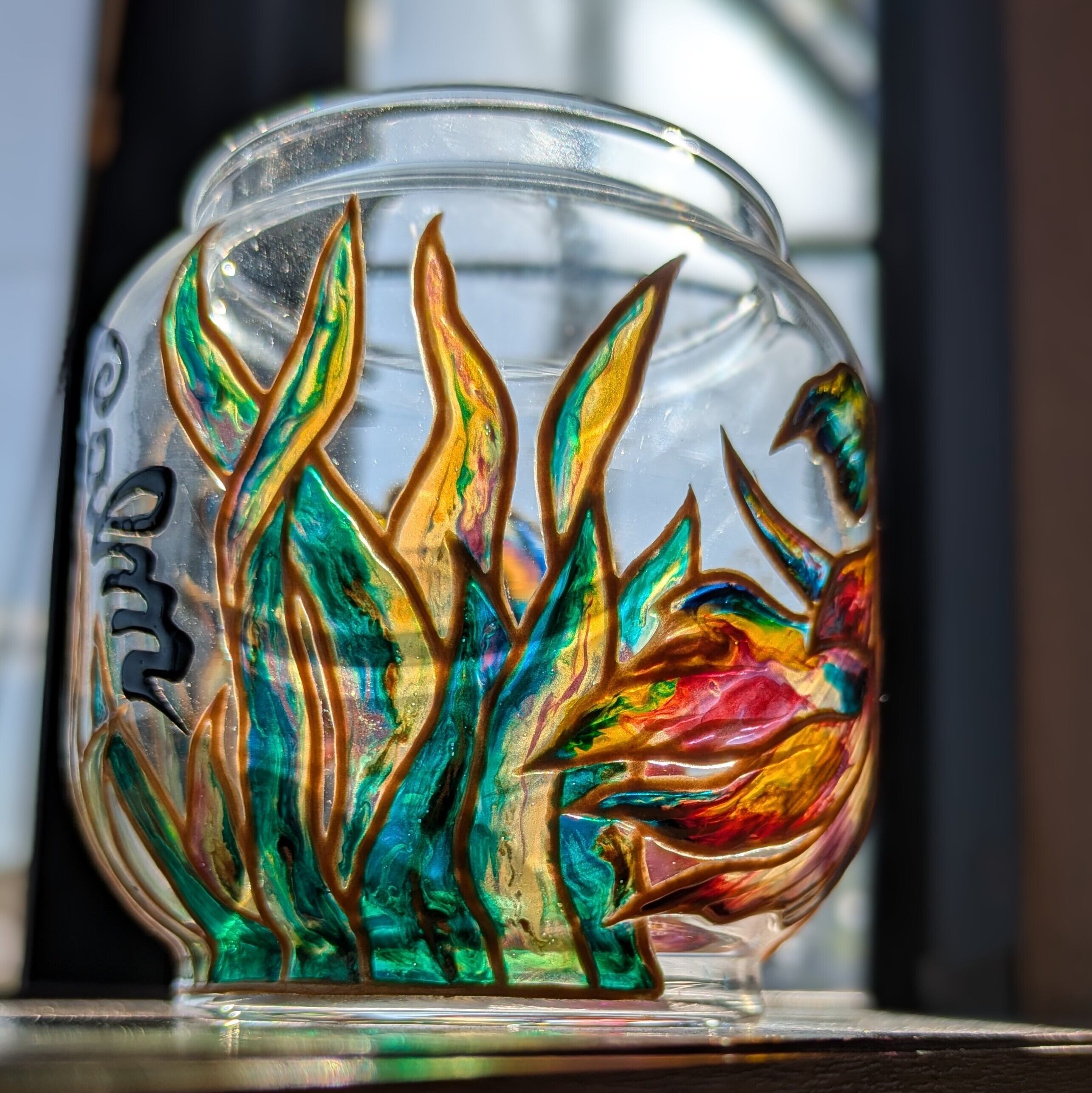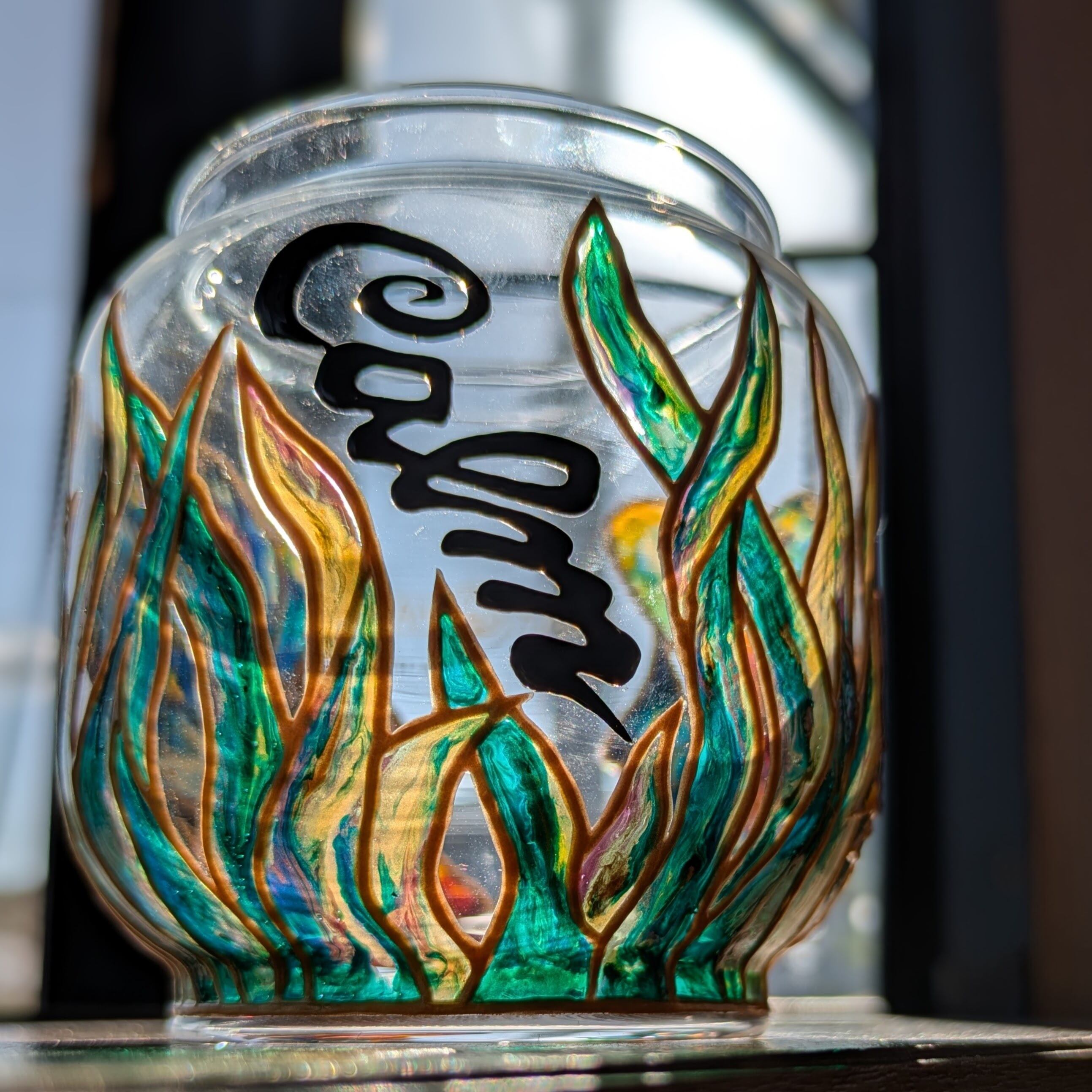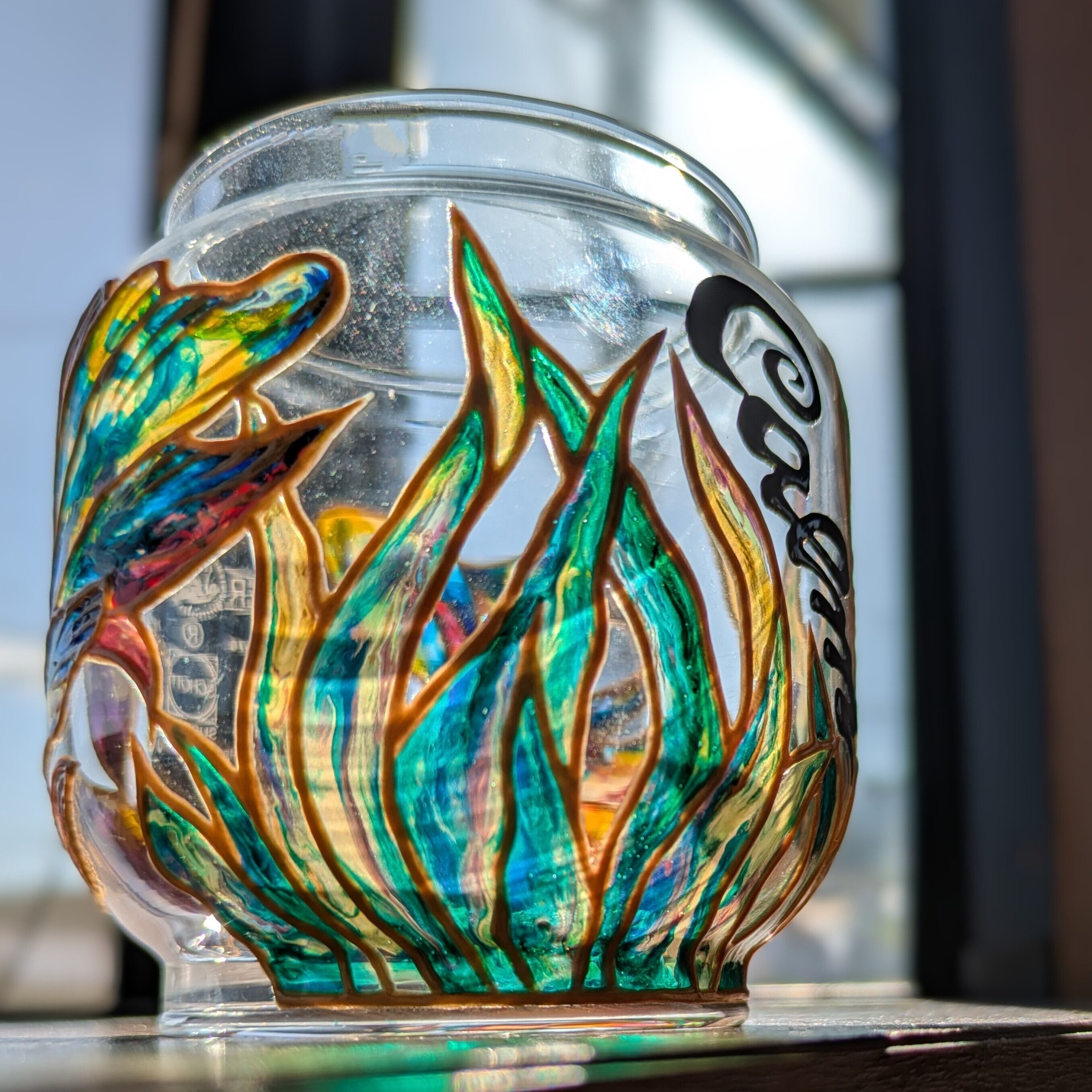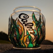 ランタン本来の灯りも楽しんでいただく為に、あえて色を抜いた部分はまるで水のよう。