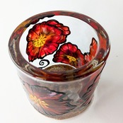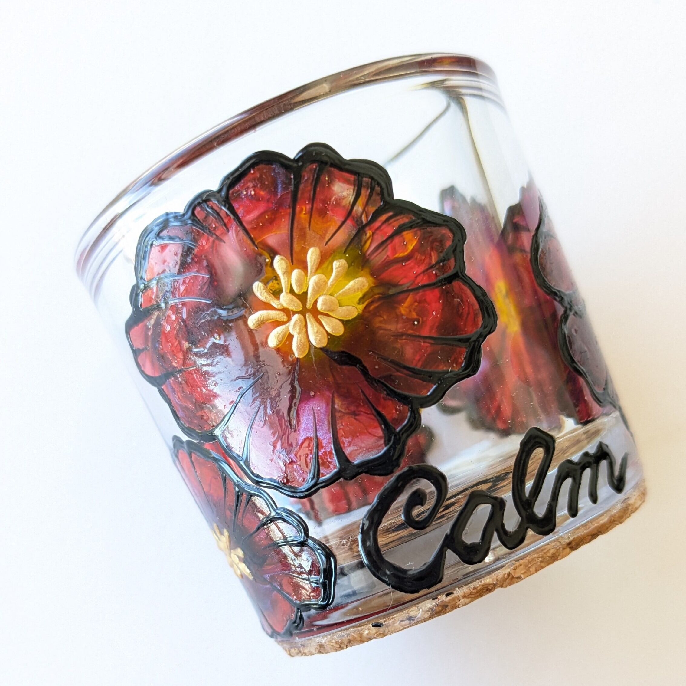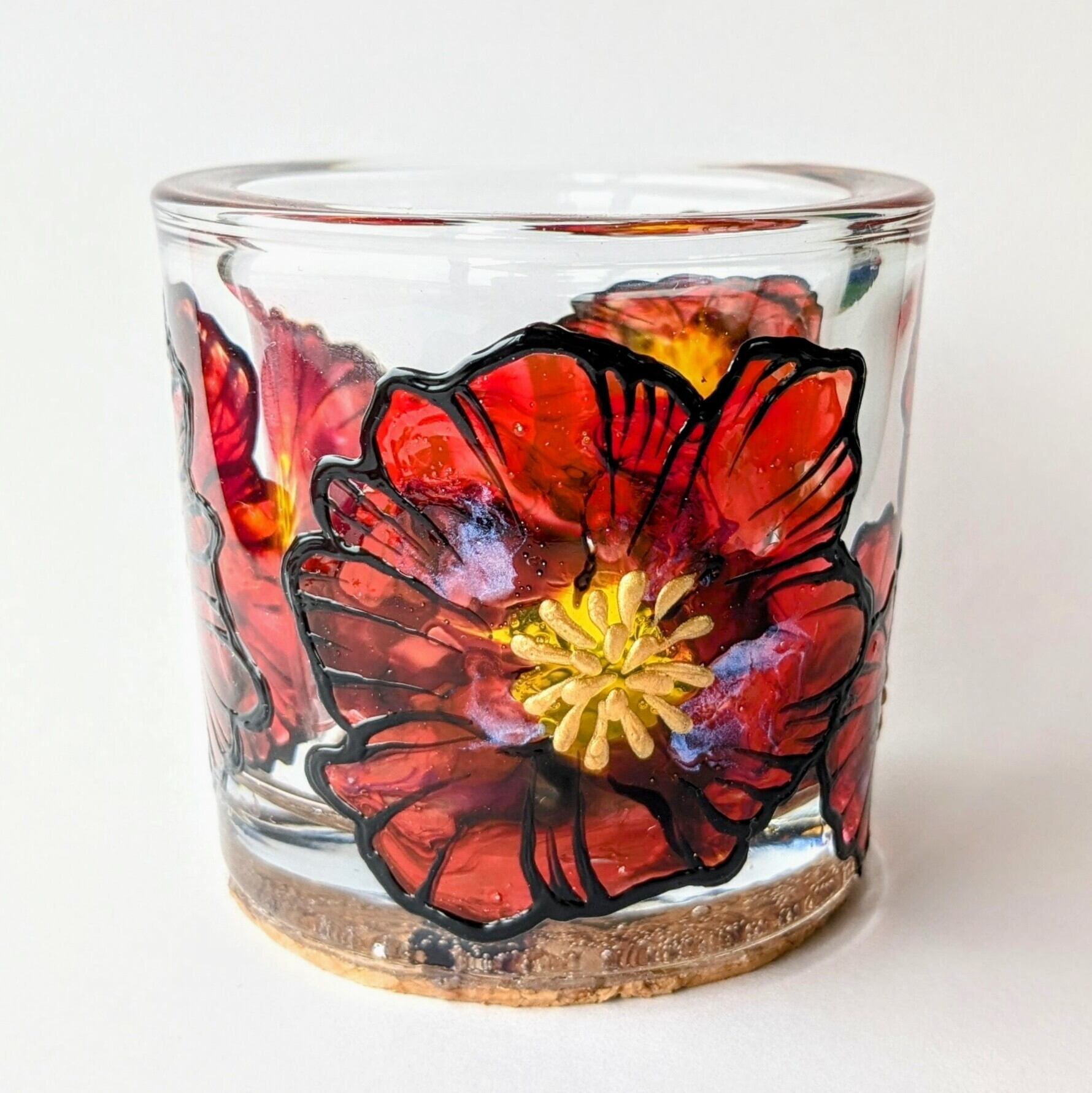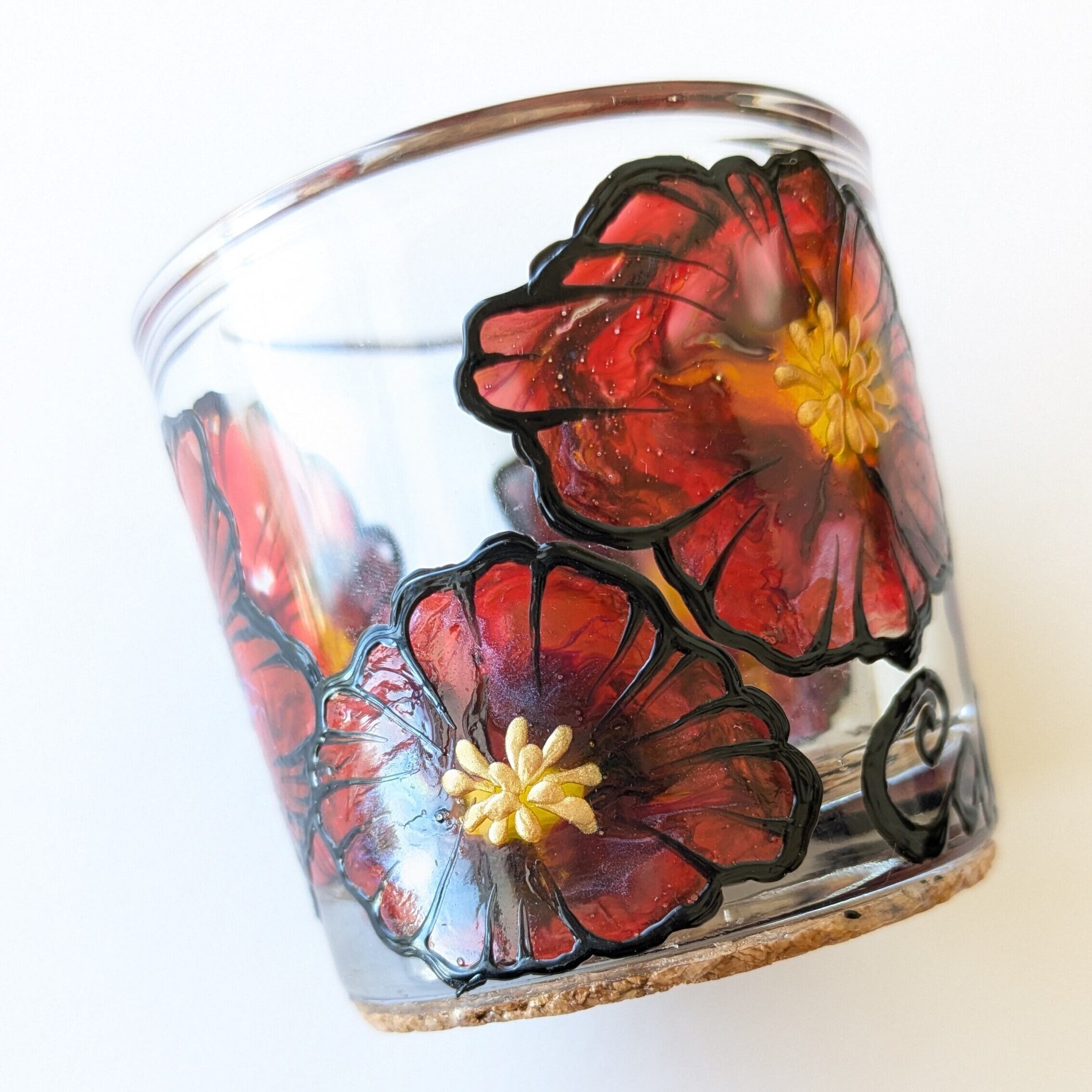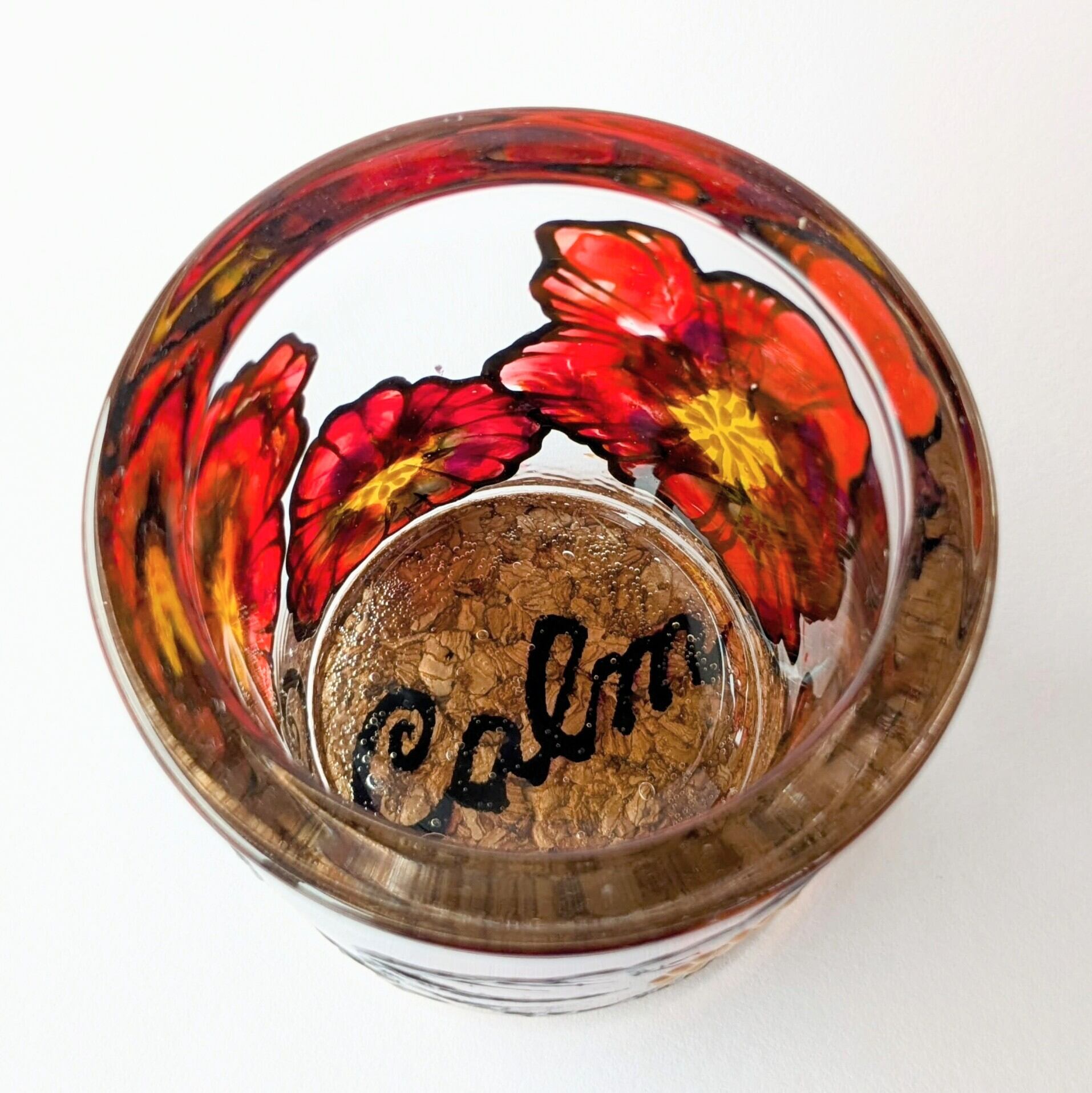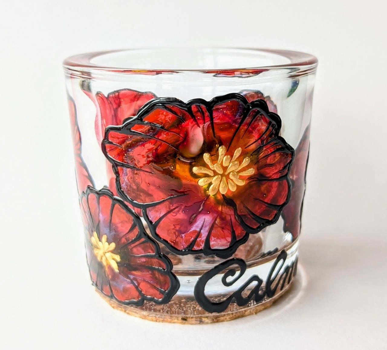 この水中花キャンドルホルダーは、美しいマーブル模様の花が施され、キャンドルを灯すことで幻想的な光を演出します。