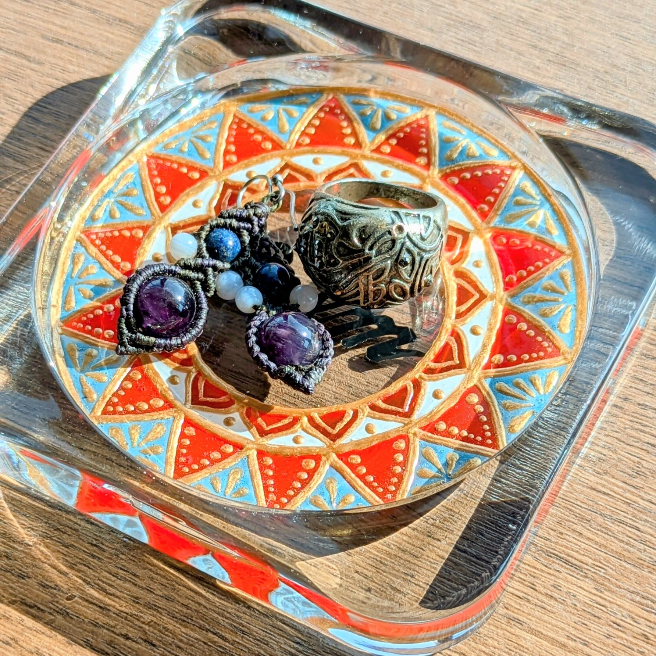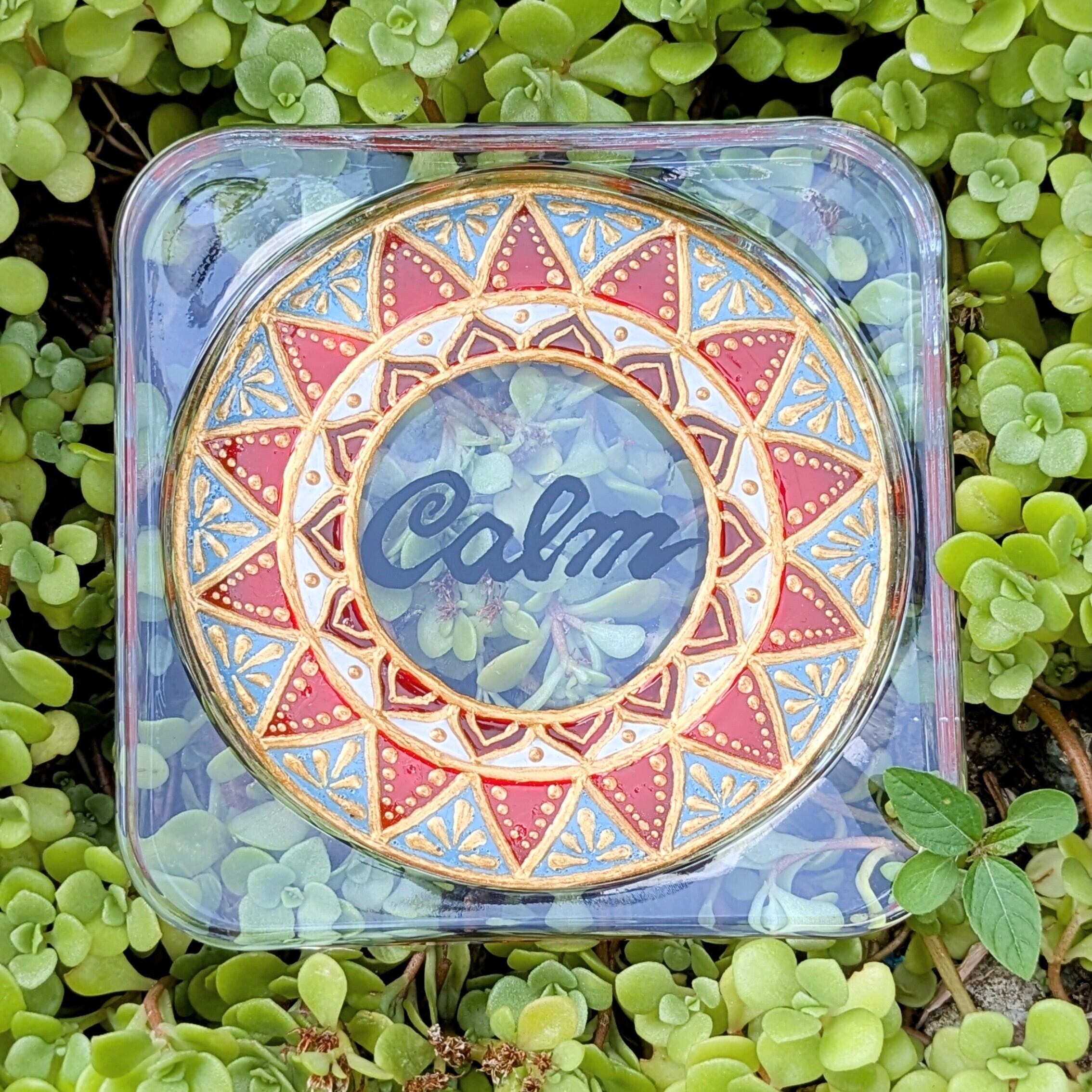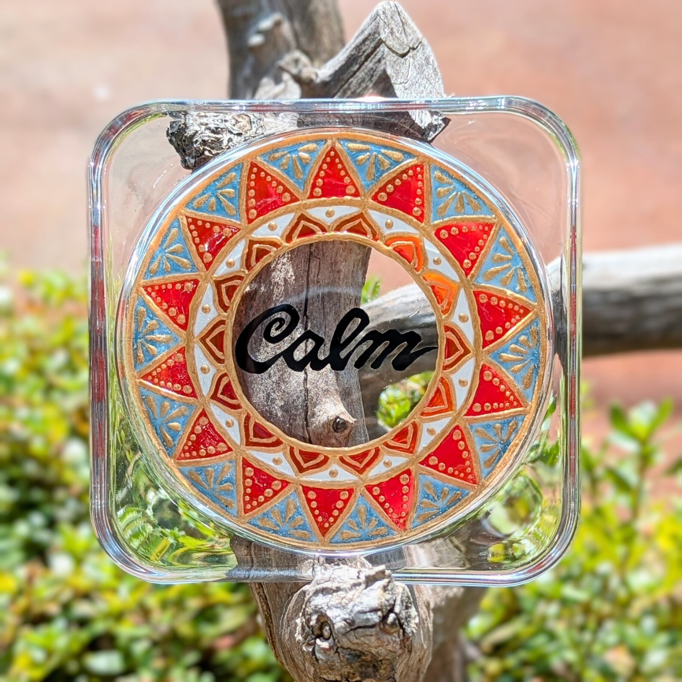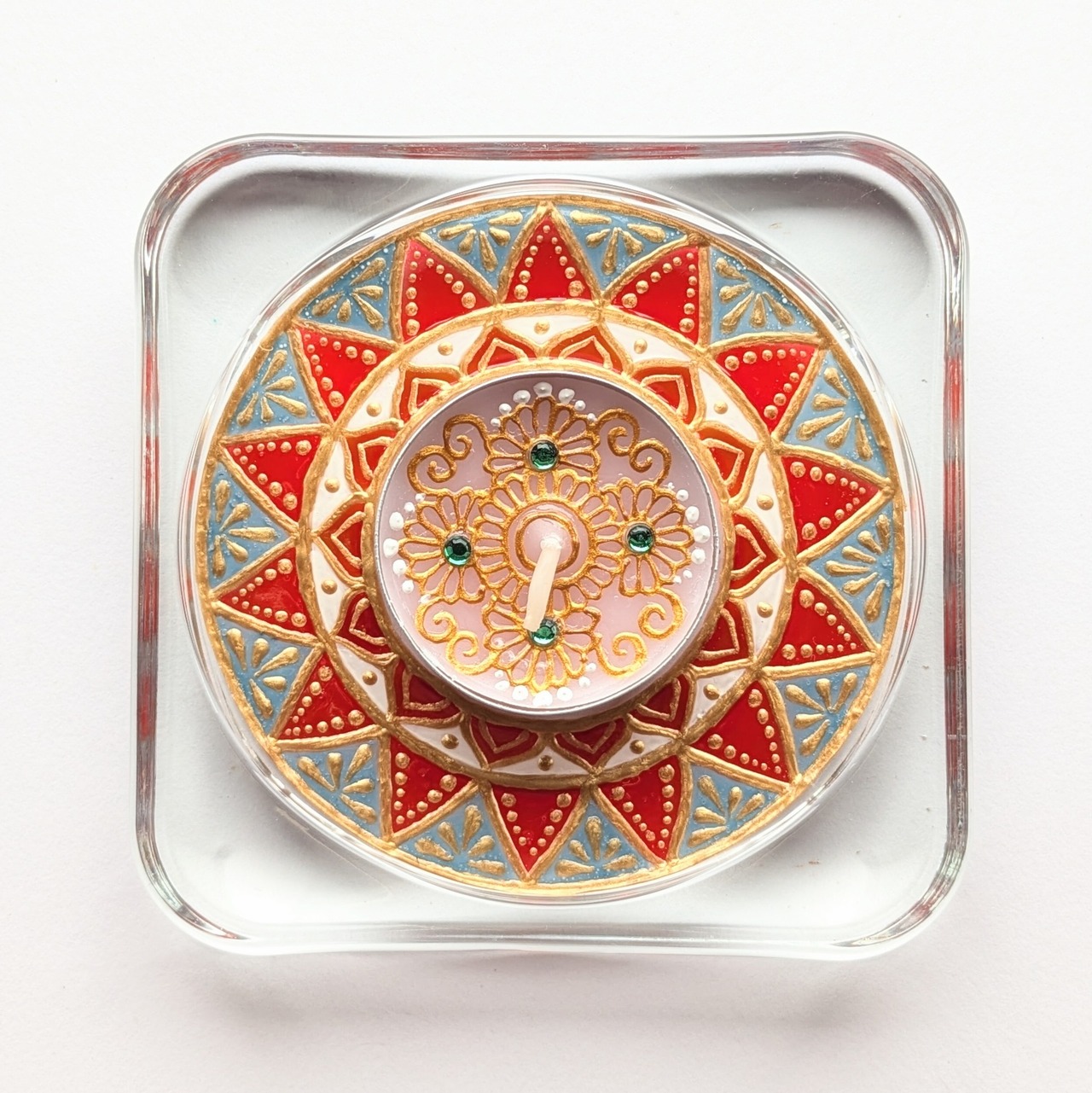 このヘナアートキャンドルホルダーは、繊細で華やかなヘナアートが施されています。