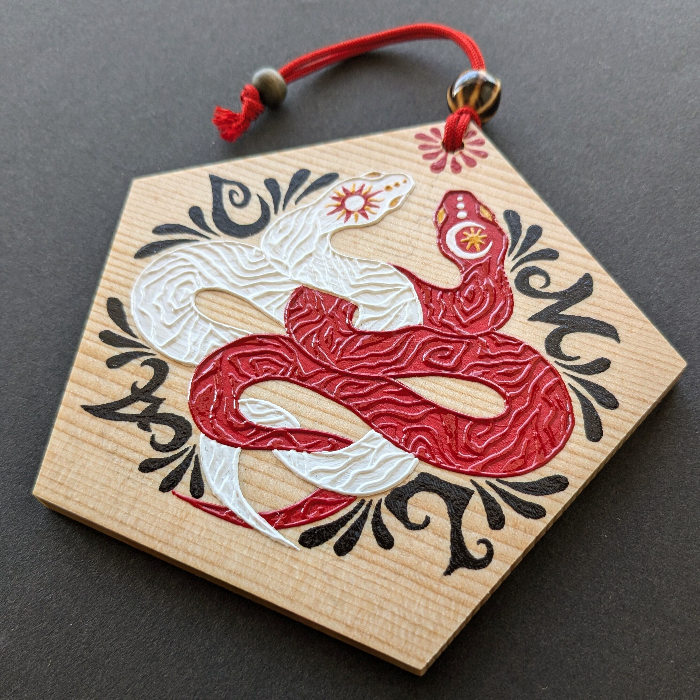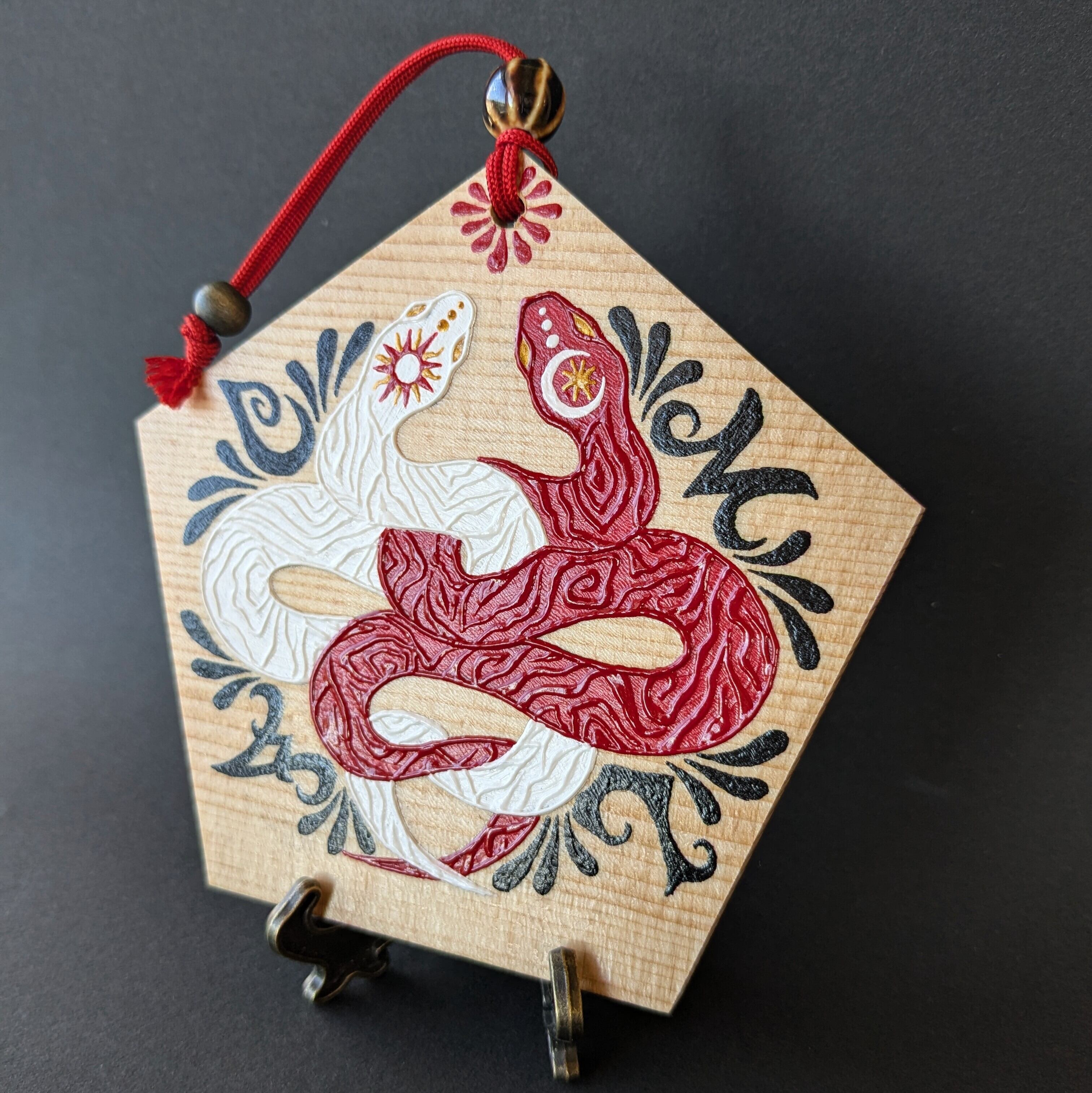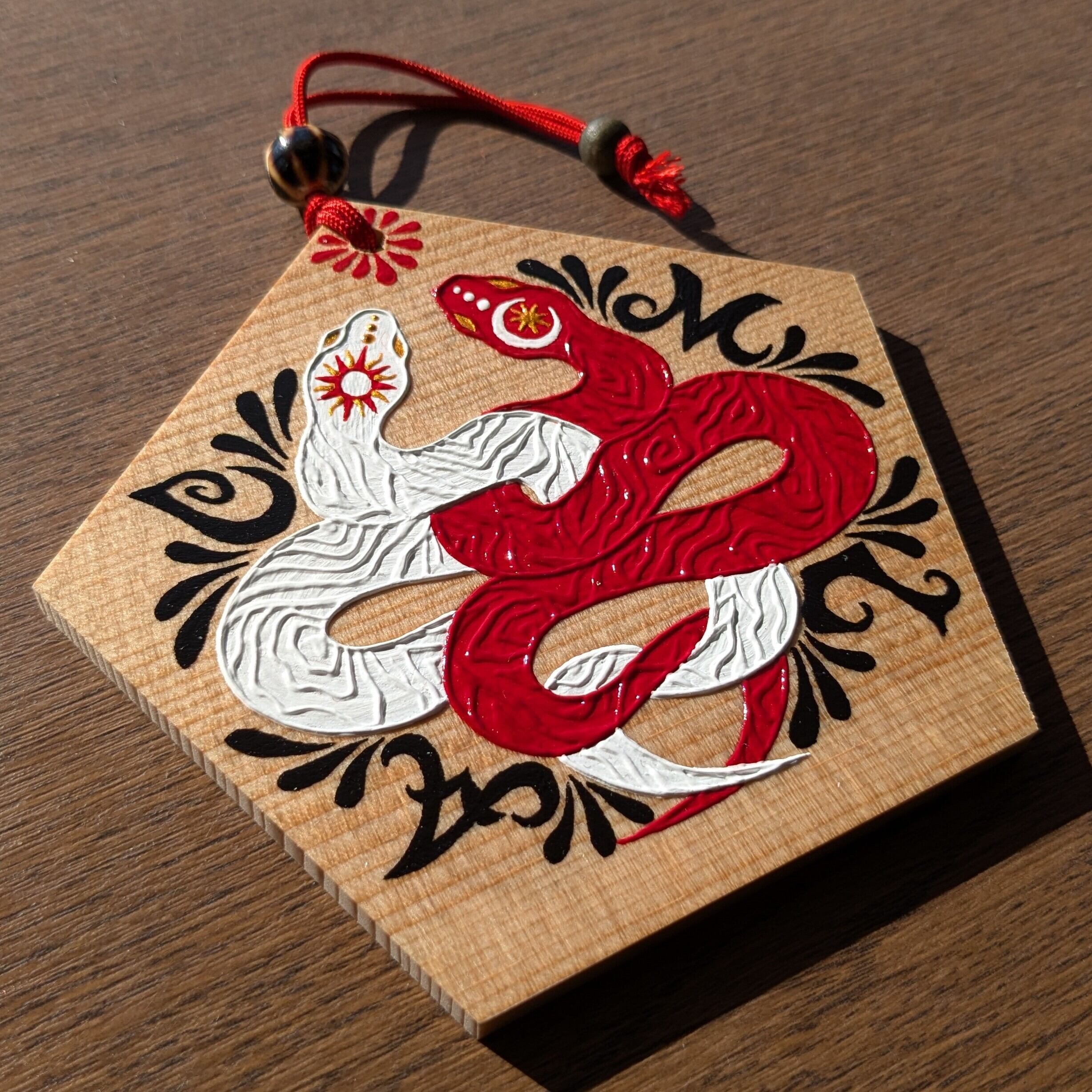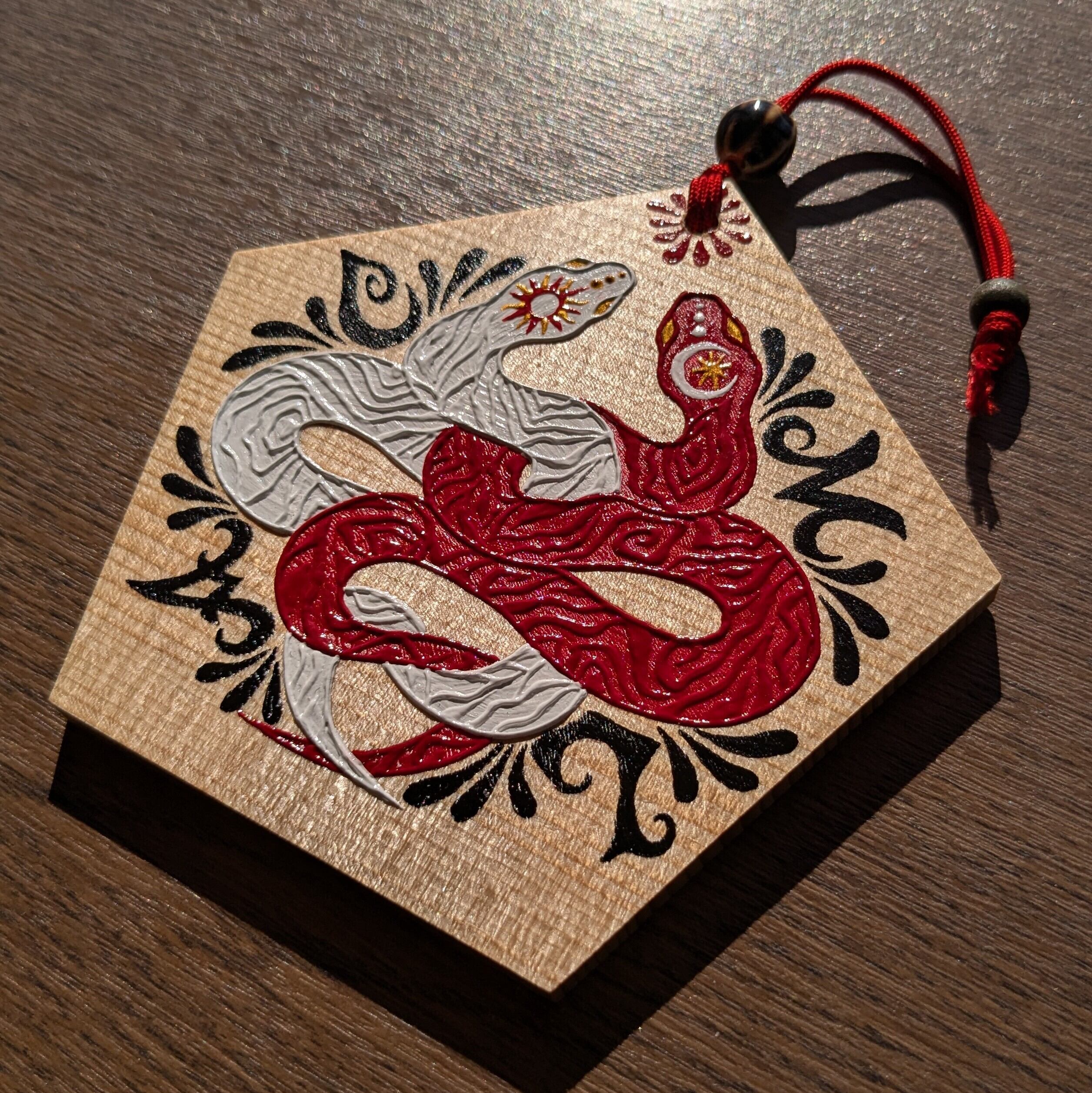 心穏やかに過ごしていただきたいという願いを込め、対の蛇、月と太陽で陰陽を表しました。